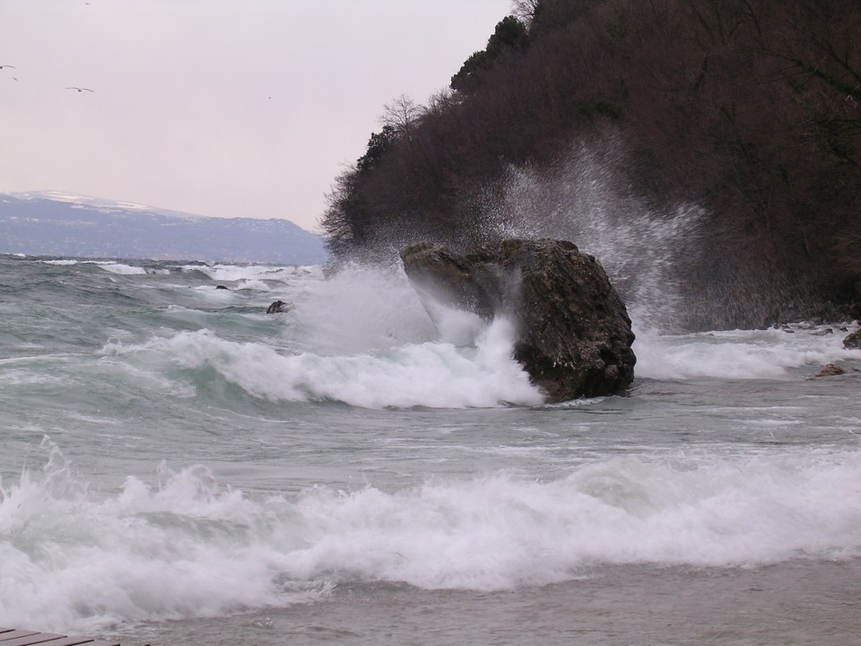 waves crash onto rock